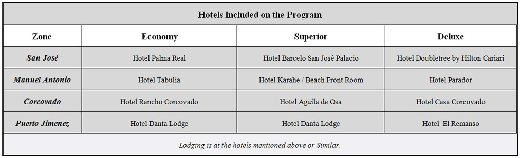 Day 1- Arrive in San José, where one of our representatives will assist you and provide the transfer to the city hotel